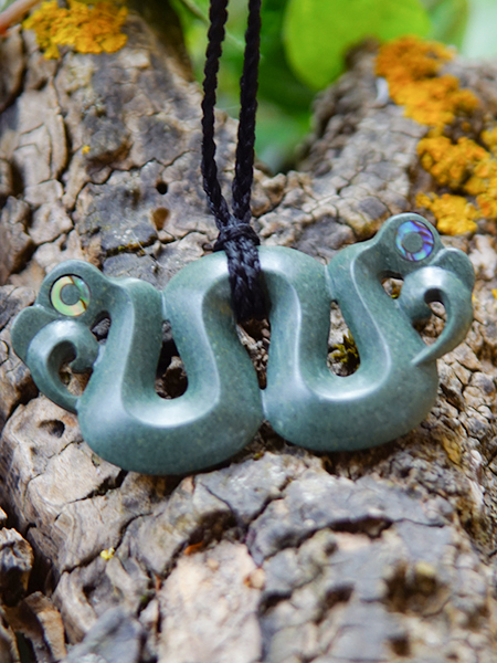 169,00 €Pekapeka Carving aus Argillit am Flechtband mit Jadeknebel, mattes Finish. Das Amulett ist auf beiden Seiten detailliert ausgearbeitet. Die Augen sind traditionell mit leuchtendem Paua-Perlmutt ausgelegt.